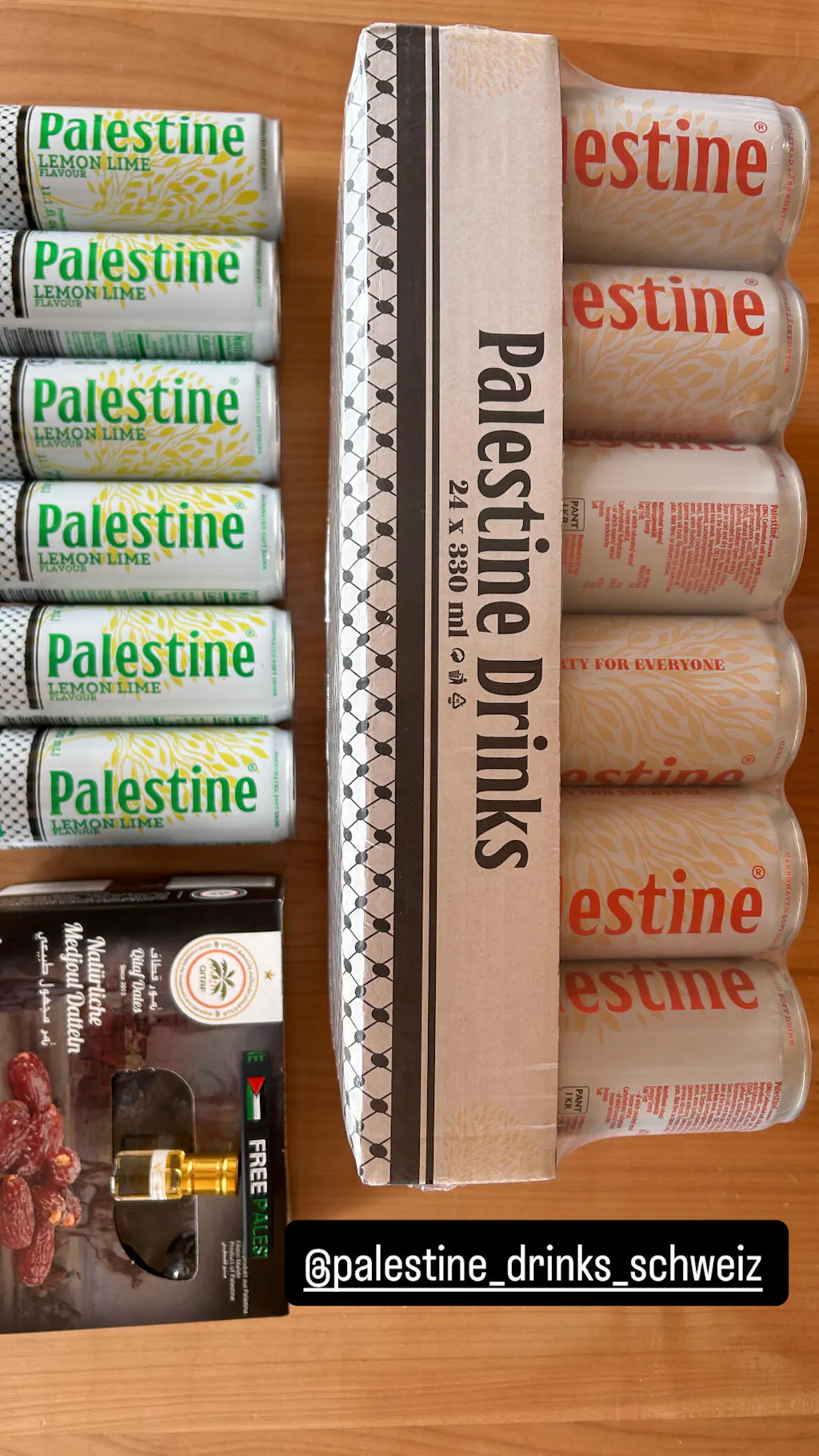 Für jede Dose werden CHF 0.10 direkt zur Unterstützung palästinensischer Familien eingesetzt.